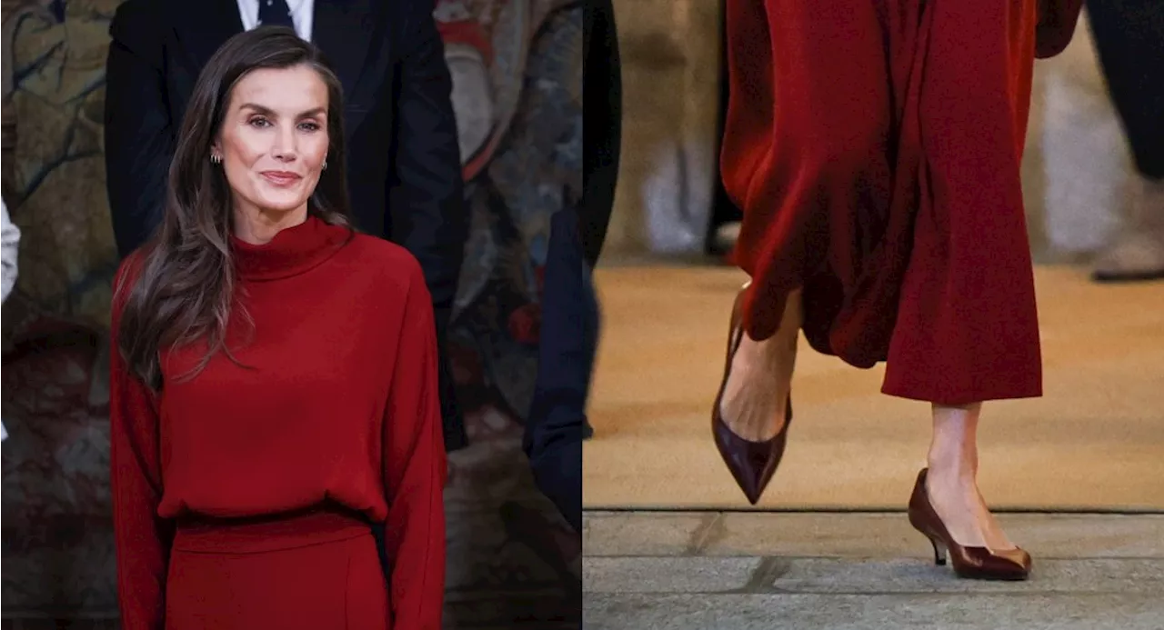 On March 14, 2024, Queen Letizia of Spain captivated attendees at the National Innovation and Design Awards Ceremony in Madrid by showcasing a striking monochromatic look. The queen donned a burgundy midi dress, expertly paired with matching patent leather kitten heels, emphasizing her elegant style.
