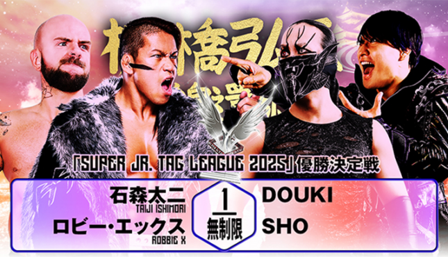 – In the finals of the Super Junior Tag League 2025, DOUKI and SHO emerged victorious against Robbie X and Taiji Ishimori.